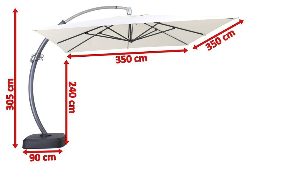 1x Luxus Ampelschirm von OUTFLEXX® in creme, ca. 350 x 350 x 305 cm